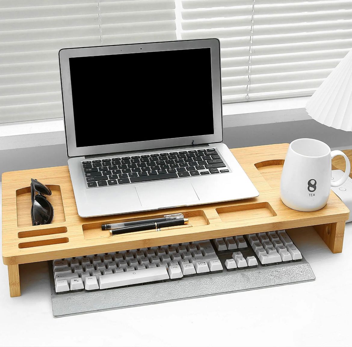 Customized Bamboo Ergonomic Computer Storage Organizer Laptop Desktop Stand Monitor Stand Riser For Desk